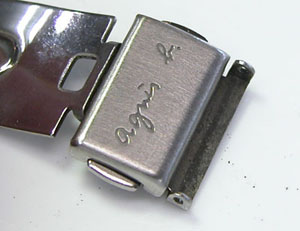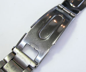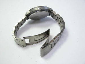 チタン板巻きバンドに三つ折れプッシュバックル。