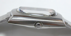 独特のカットガラスですね・・・こういうガラスの腕時計は割った時に困りますから注意が必要。