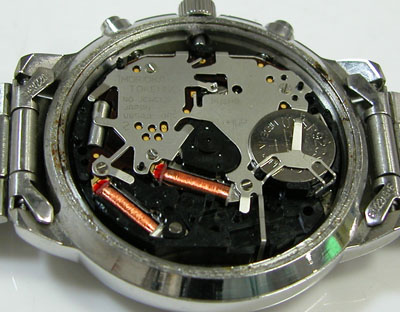 綺麗になったケースにムーブメントを戻して電池格納部をチェックします。
