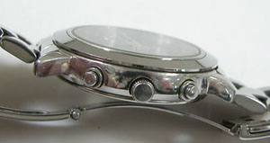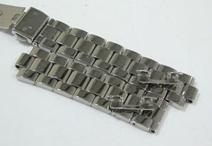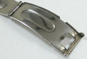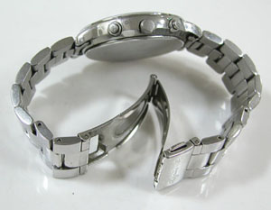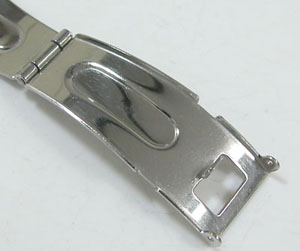 ステンレス無垢バンドに三つ折れプッシュバックル。