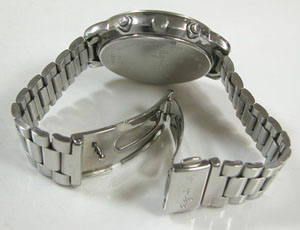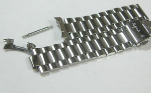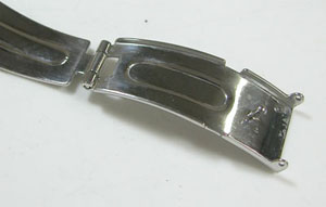ステンレス板巻きバンドに三つ折れプッシュバックル。