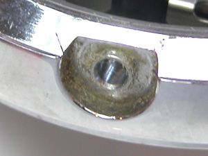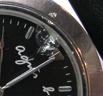 ガラスが内側に欠けています。