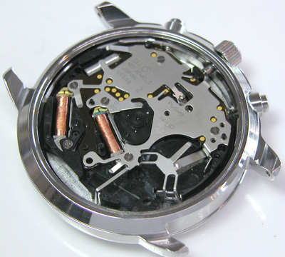これが取り出した文字盤&ムーブメント。文字盤がカットされているのはクロノグラフのプッシュボタンがつかえてムーブメントが取り出しにくくなるのを回避する為ですが、流石セイコー、こういった心配りがにくい。