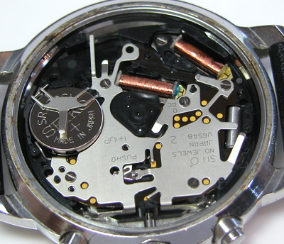 綺麗になったケースにムーブメントをもどして電池格納部をチェックします。