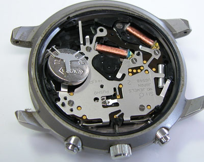 綺麗になったケースにムーブメントを戻して電池格納部をチェックします。
