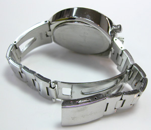 アルバのAKAでも、このデザインはありました。ステンレス半無垢バンドに三つ折れプッシュバックル。