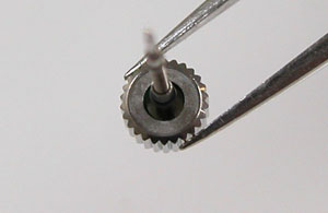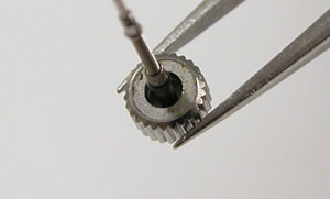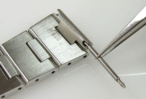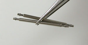 新品のバネ棒を装着しますが普通サイズは太くて入りません。特殊な細いバネ棒を装着。