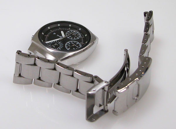 ブレスはバネ棒は錆びており外してあると言う事です。またバックルの”パチン!”が緩いと言うことですが、これはダブルロックですし問題はありません。板バネなので微妙な加減の調整が難しく堅すぎる結果になれば元に戻せなくなります。
