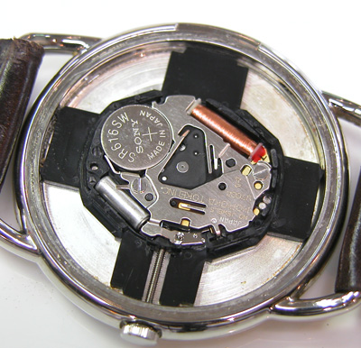 綺麗になったケースにムーブメントを戻して電池格納部をチェックします。