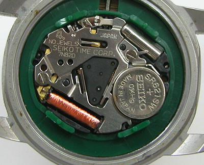 綺麗になったケースにムーブメントを戻して電池格納部をチェックします。