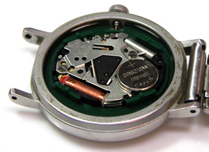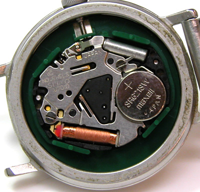 綺麗になったケースにムーブメントをもどして電池格納部をチェックします。
