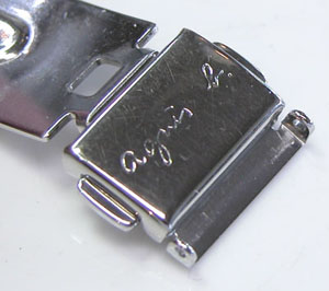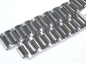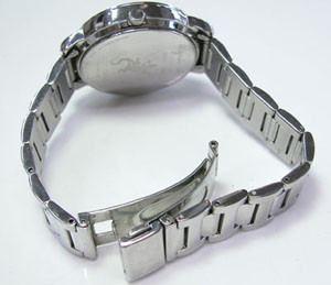 ステンレス無垢バンドに三つ折れプッシュバックル。