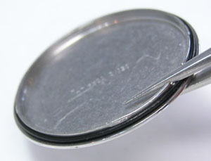 裏蓋の裏側もチェックします。パッキンが切れていますね・・。