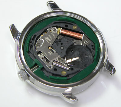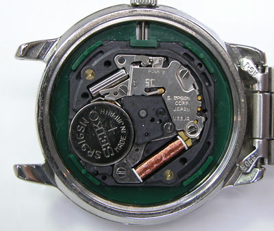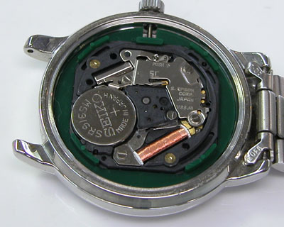 綺麗になったケースにムーブメントを戻して電池格納部をチェックします。