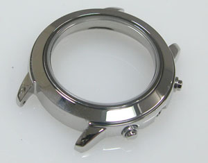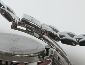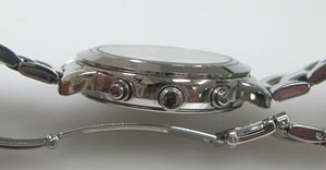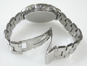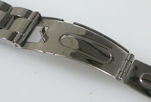 ステンレス無垢バンドに三つ折れプッシュバックル。