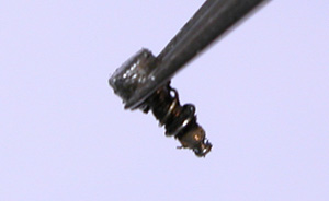 それでも動かないボタンは”CRC-556 "を射します。1時間ほど待ってから”四つ割チャック”で摘んで回して固まったものをほぐして行きます。これで動かないボタンの99%は抜けます。