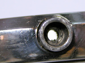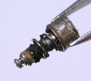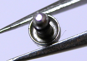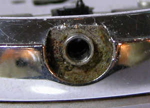 これが抜いた所です。といってもCRC-556一昼夜漬け。それでもビクともしません。四つ割チャックで片方のボタンは抜けましたが片方はビクともしません。