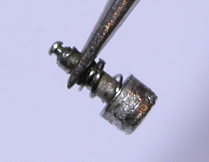 これがキャリバー。プッシュボタンを見ると完全に押し込まれた状態で固まっているのが分かります。