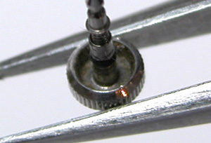 ケースと裏蓋の接点はどうしても汚れます。竜頭の裏側チェック。