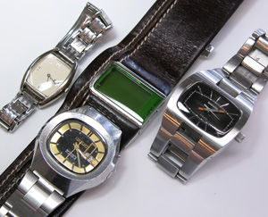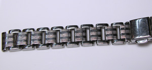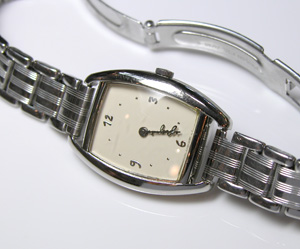 極端なカーブガラスが特徴。板巻ステンレスバンドに三つ折れプッシュバックル。