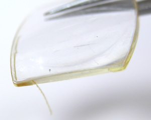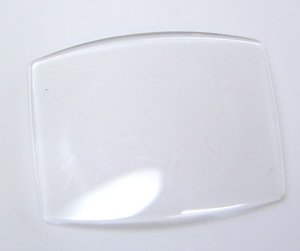 はい、接着剤を落とせば黄ばみは消えますね。表だけではなく裏側もカーブしています。こういう場合は平らなガラスでは針に当たってしまいますから、既製品のガラスは合わないです。