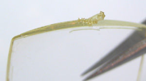 乾燥した接着剤を削り落として行きます。結構、厚塗り。