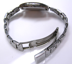 板バネバックルなどは汚れがたまります。裏蓋は”はめ込みタイプ”