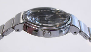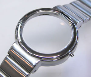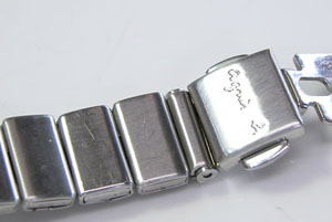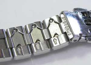 ステンレス半無垢バンドに三つ折れプッシュバックル。