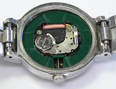 綺麗になったケースにムーブメントを戻して電池格納部をチェックします。