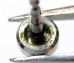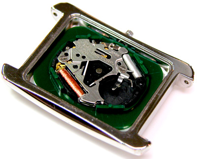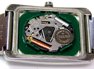 綺麗になったケースにムーブメントをもどして電池格納部をチェックします。