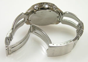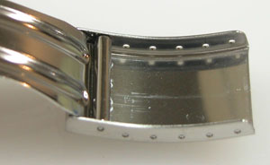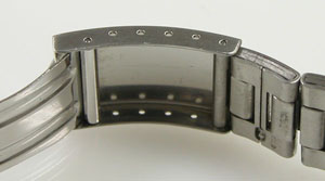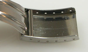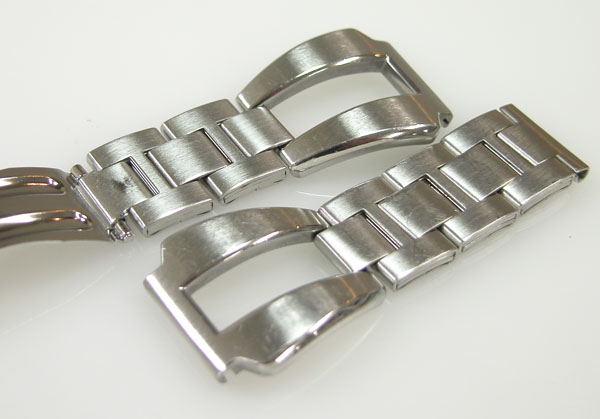 ステンレス無垢バンドに三つ折れバックル。