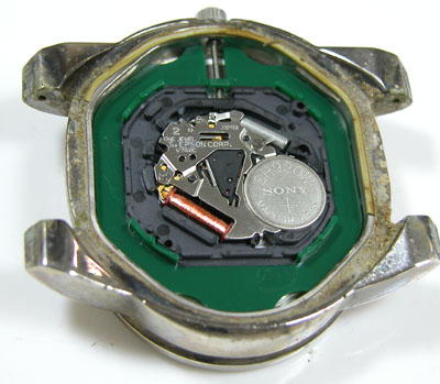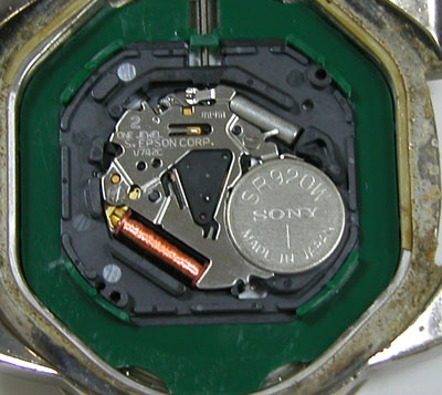 綺麗になったケースにムーブメントを戻して電池格納部をチェックします。
