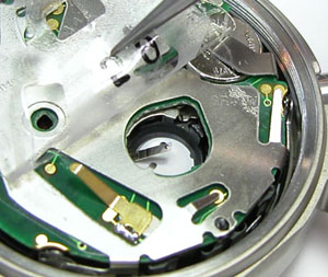 回路基板の12h側バネの近くにACパターンがあります。(金属板に ↑AC と表示あり)