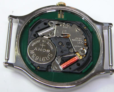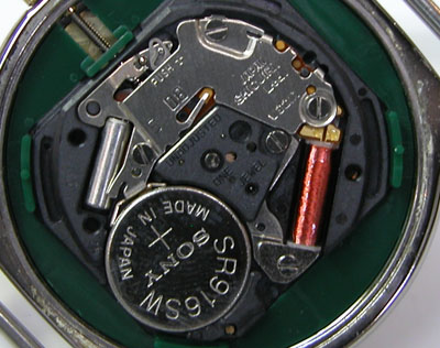綺麗になったケースにムーブメントを戻して電池格納部をチェックします。