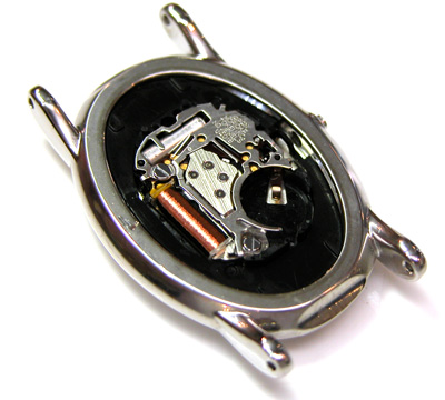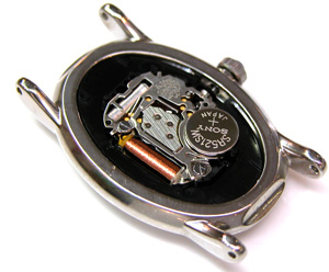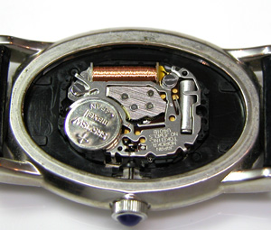 綺麗になったケースにムーブメントをもどして電池格納部をチェックします。