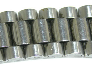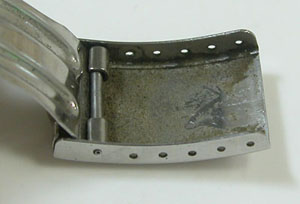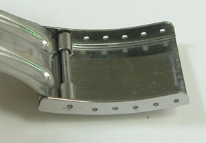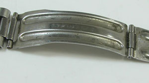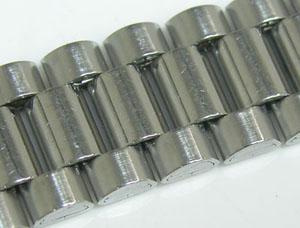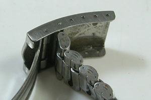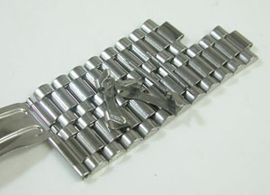 ステンレス無垢バンドに三つ折れバックル。