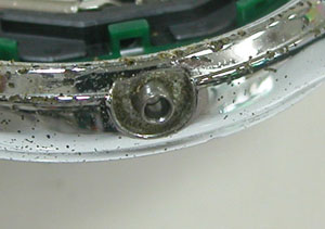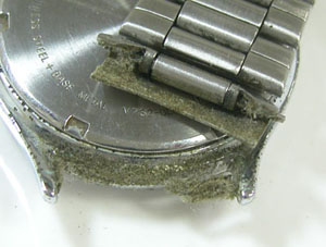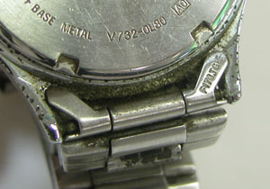 この状態は時計屋なら外さなくても分かるレベル。お客様の方から「防水はもう無理と思いますが動けばOKなので」と言って頂けると受け付けてくれる店もあるかも知れませんね。
