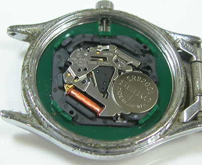 綺麗になったケースにムーブメントを戻して電池格納部をチェックします。