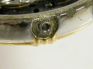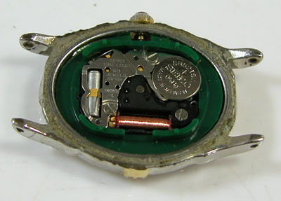 綺麗になったケースにムーブメントを戻して電池格納部をチェックします。