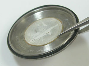 綺麗になったケースにムーブメントを戻して電池格納部をチェックします。