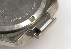 ラグ部はバネ棒ですが普通とは逆でベルトがラグ部をまたぐタイプ。