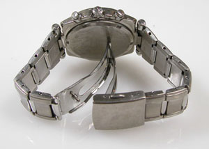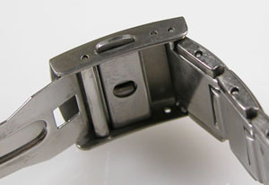 チタン無垢バンドに三つ折れプッシュバックル。