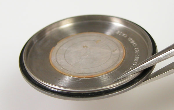 綺麗になったケースにムーブメントを戻して電池格納部をチェックします。