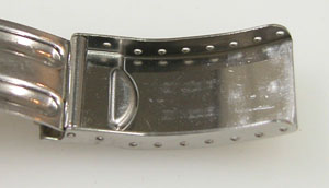 ステンレス板巻きバンドに三つ折れダブルロック。