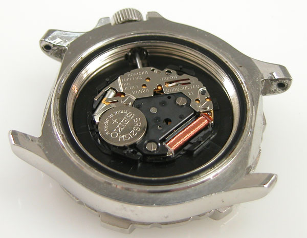 綺麗になったケースにムーブメントを戻して電池格納部をチェックします。