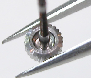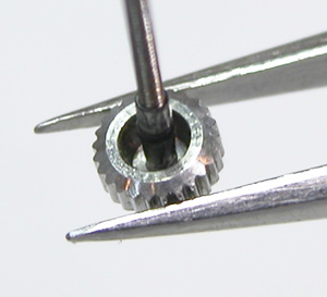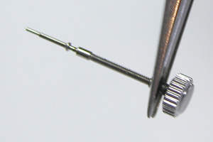 おや?竜頭が歪んでいるでは。かなりぶつけていますね・・。