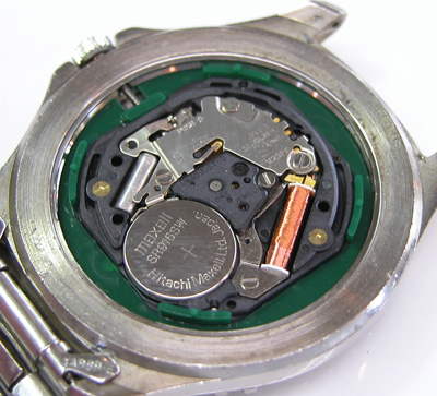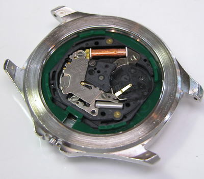 綺麗になったケースにムーブメントを戻して電池格納部をチェックします。