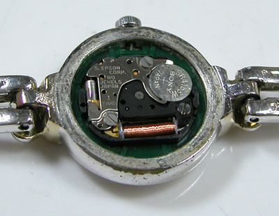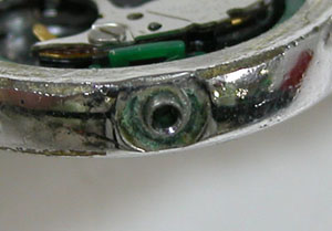 綺麗になったケースにムーブメントを戻して電池格納部をチェックします。