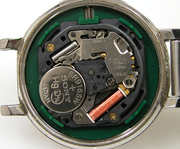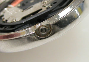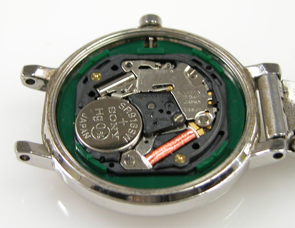 綺麗になったケースにムーブメントを戻して電池格納部をチェックします。
