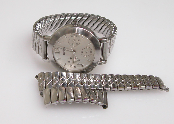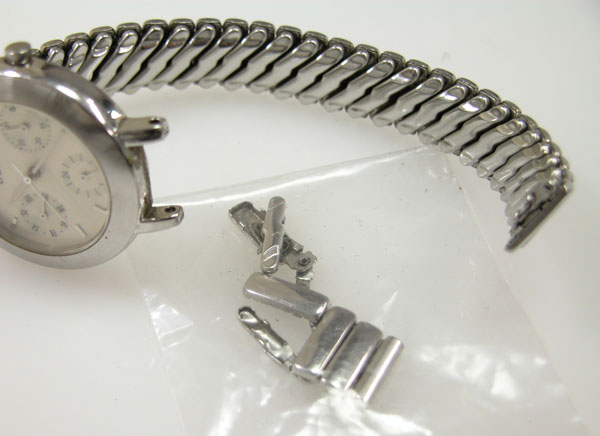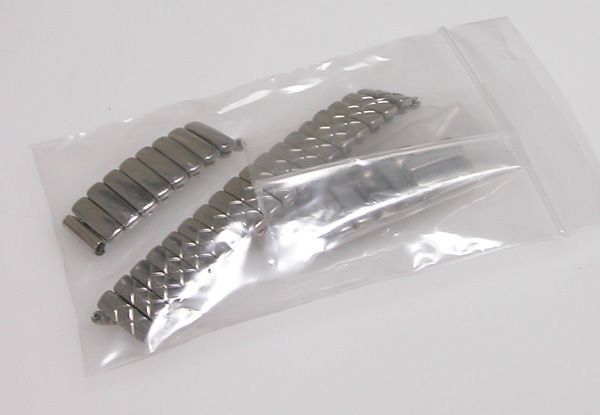 さて壊れたコマは修復は出来ない状態ですから、ガラ箱の中から同じタイプの壊れたバンドを探し出し洗浄します。中央の壊れて伸びた箇所は外して処分ですが。